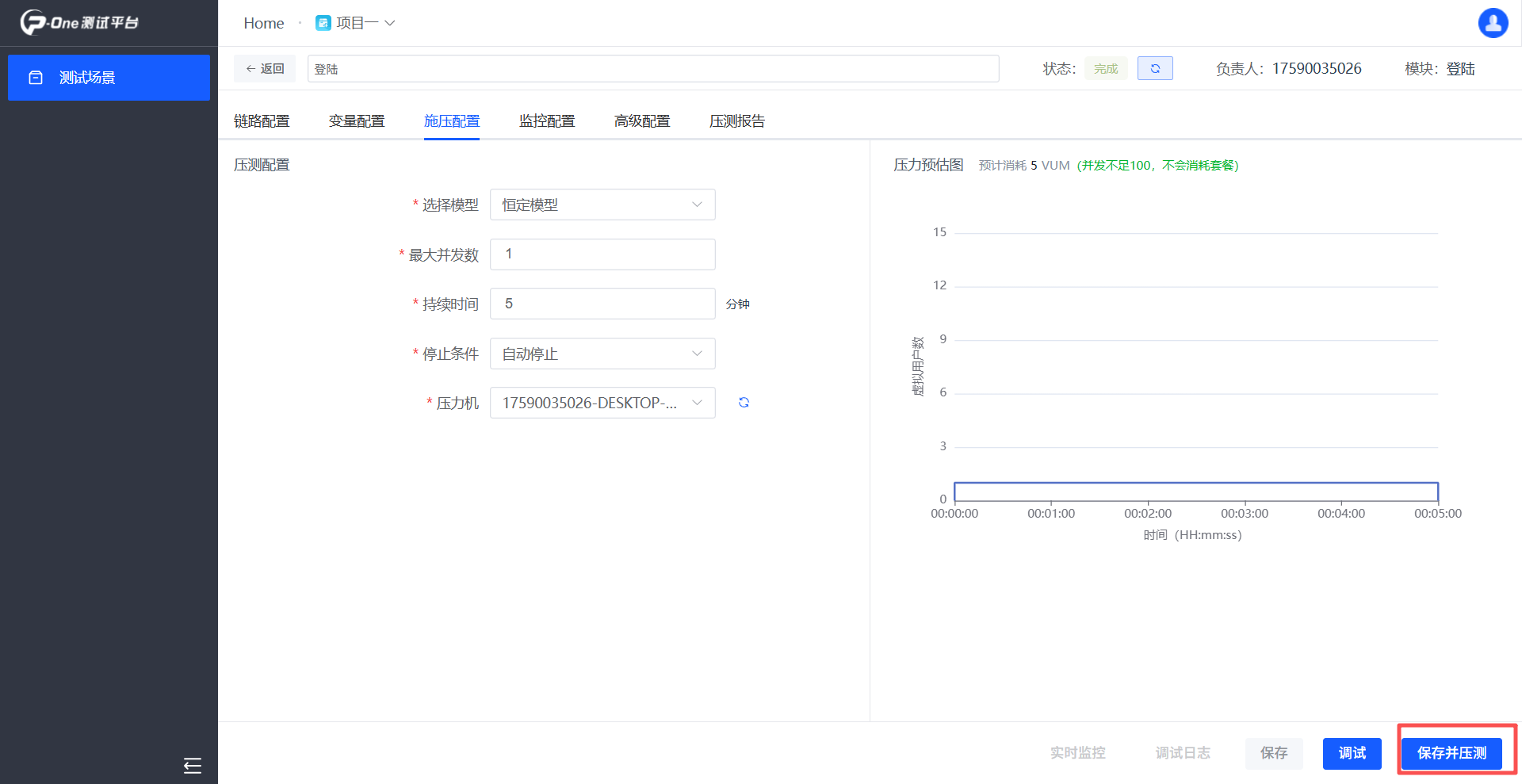 點(diǎn)擊保存并壓測(cè)
