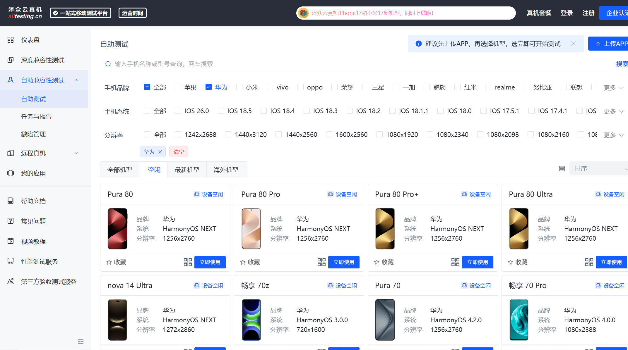 澤眾軟件旗下澤眾云真機平臺擁有幾千臺機型,已覆蓋市場98%機型,平臺兼容性測試服務包括移動應用深度兼容性測試和自助兼容性測試,行業(yè)覆蓋了金融、家居、醫(yī)療、交通、教育等行業(yè),Alltesting兼容性測試已成為市場主流的供應商,我們不斷進行技術突破和創(chuàng)新,全力打造一站式移動測試平臺。