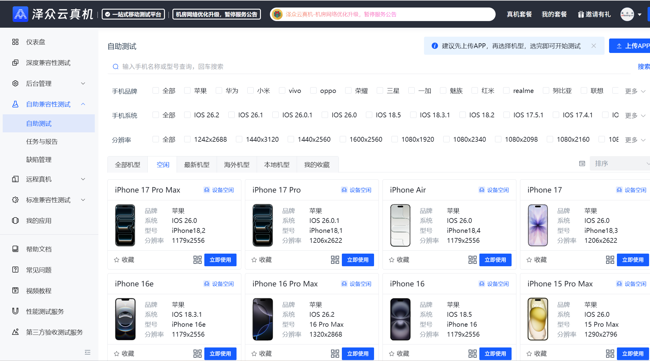 澤眾軟件(Alltesting)深度兼容性測(cè)試服務(wù),提供幾千款機(jī)型,采用自動(dòng)化測(cè)試+特殊場(chǎng)景測(cè)試(人工),經(jīng)過人工復(fù)核結(jié)果后生成缺陷列表,自動(dòng)生成測(cè)試報(bào)告,針對(duì)缺陷機(jī)型提供免費(fèi)回歸測(cè)試服務(wù),回歸測(cè)試時(shí)澤眾云還提供澤眾云真機(jī)平臺(tái),協(xié)助客戶遠(yuǎn)程調(diào)試定位兼容性問題。另外用戶也可以在澤眾云真機(jī)進(jìn)行自助兼容性測(cè)試,解決您的應(yīng)用兼容性問題。