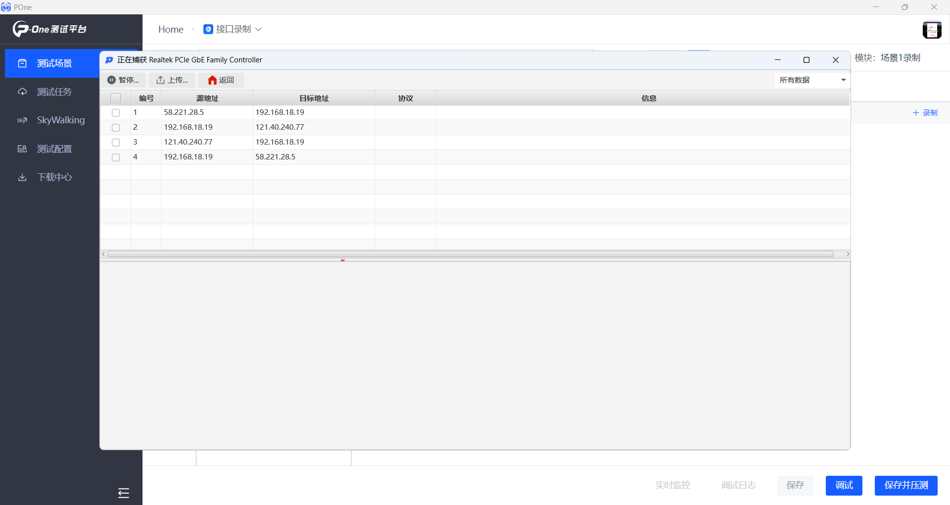 選ip地址后,則可開始錄制