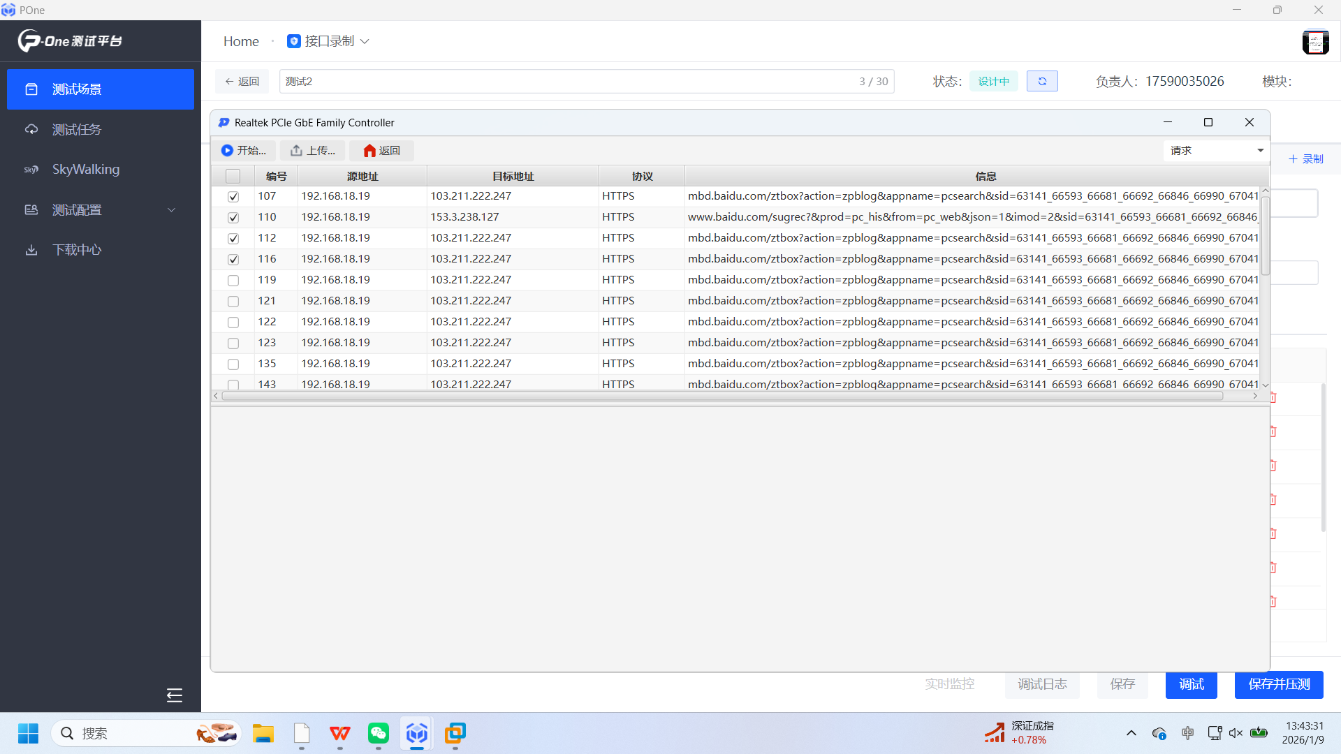 選擇所要壓測的接口信息點擊上傳即可開始調(diào)試并壓測