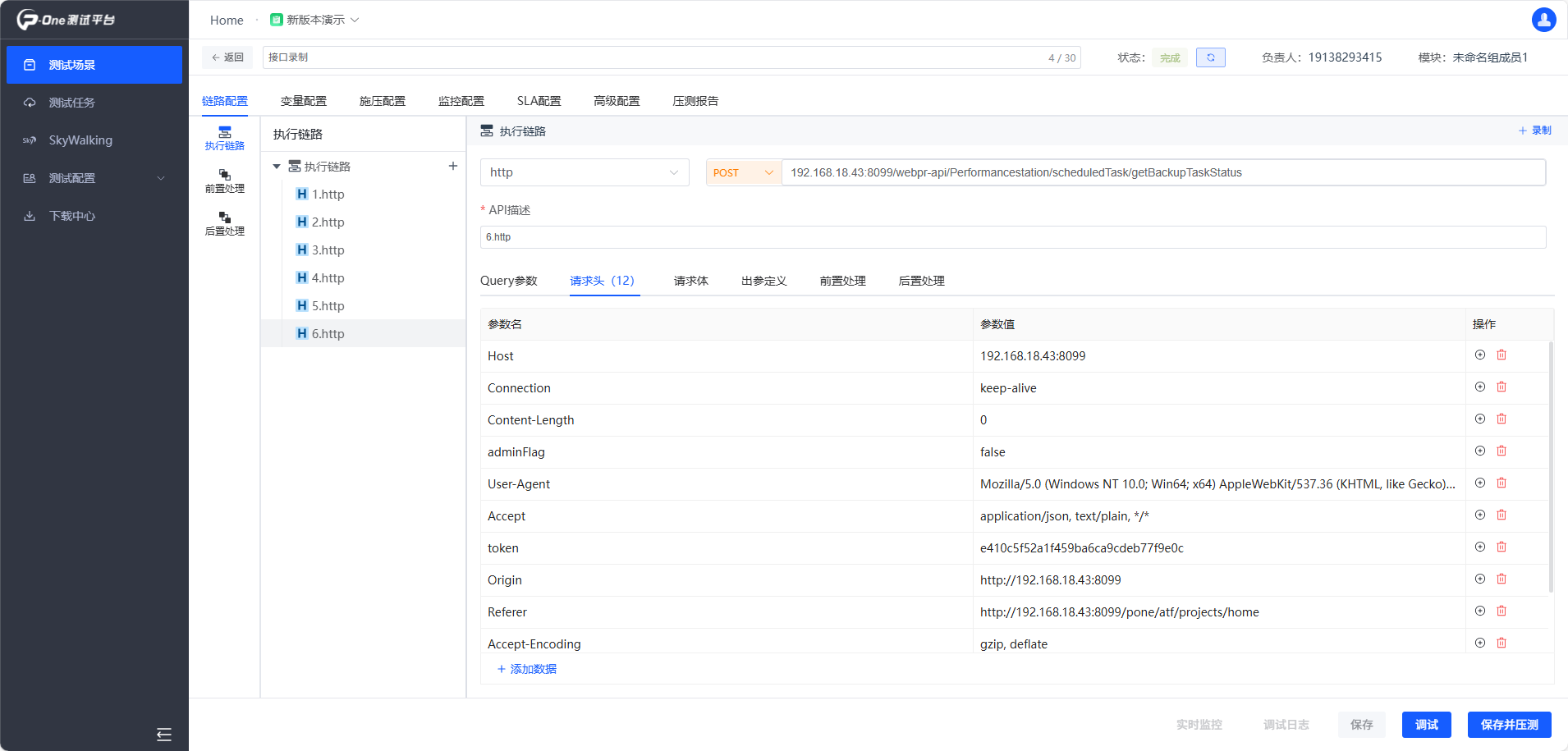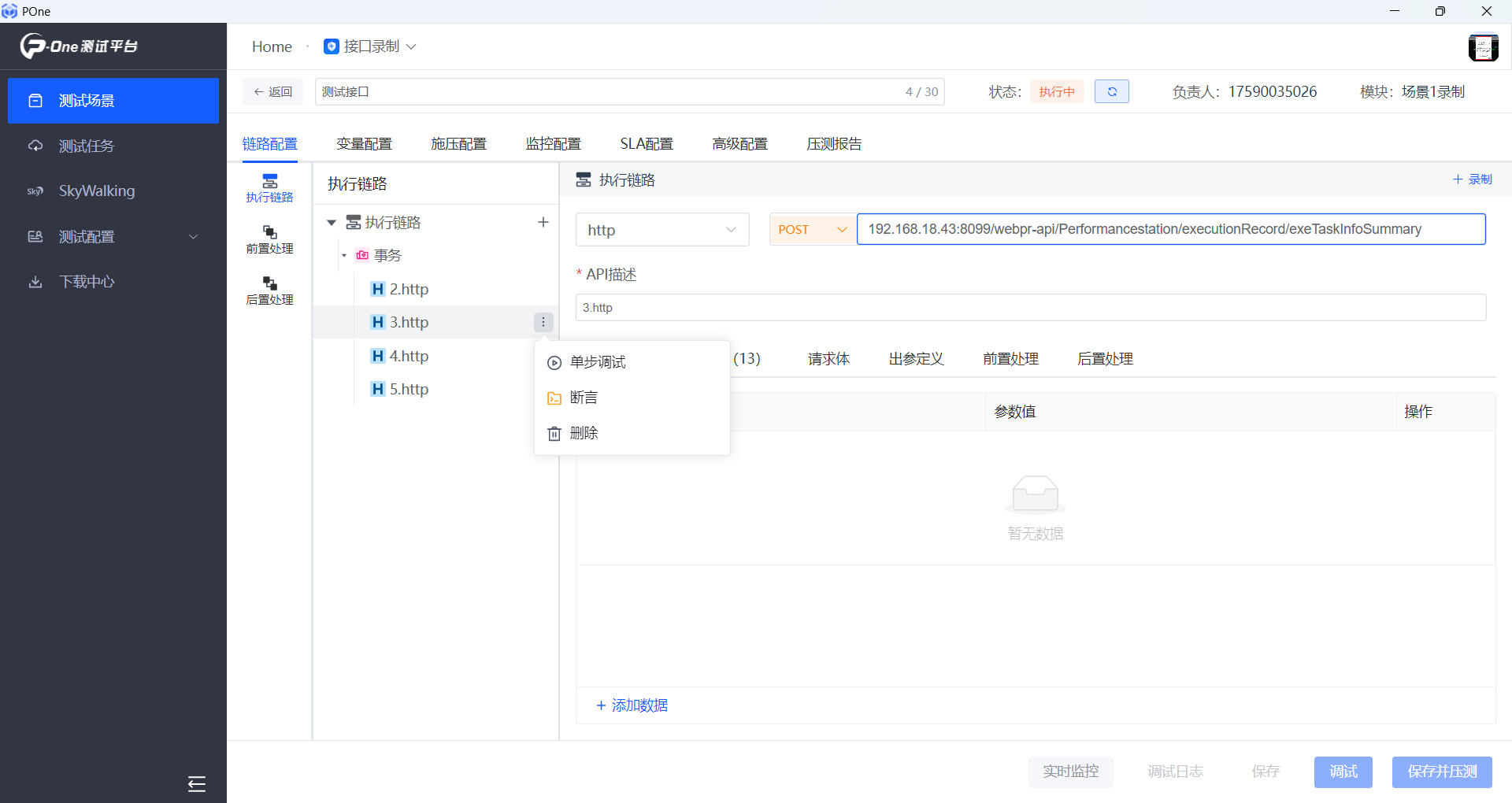POne上個版本創(chuàng)建性能場景,需要手工來添加測試接口信息(見下面截圖),對新手來說有點麻煩了,接口參數(shù)信息不能出任何錯誤,很容易出現(xiàn)調(diào)試失敗。