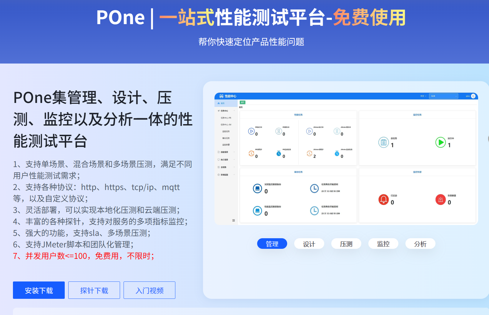 POne技術(shù)團隊以客戶需求為中心,繼續(xù)升級和優(yōu)化產(chǎn)品,有任何產(chǎn)品問題,請咨詢在線客服人員,協(xié)助你定位問題。產(chǎn)品目標是讓用戶能夠快速上手,一站式全鏈路性能測試平臺,幫你快速定位產(chǎn)品性能問題。