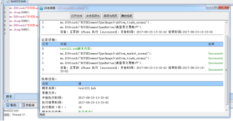 回放腳本的過(guò)程,實(shí)質(zhì)是對(duì)先前的錄入動(dòng)作的一次重復(fù)操作,只是這個(gè)過(guò)程是根據(jù)錄入的腳本自動(dòng)完成的。下面就以先前錄入的IOS設(shè)備腳本為例,介紹一下回放操作及注意事項(xiàng)。