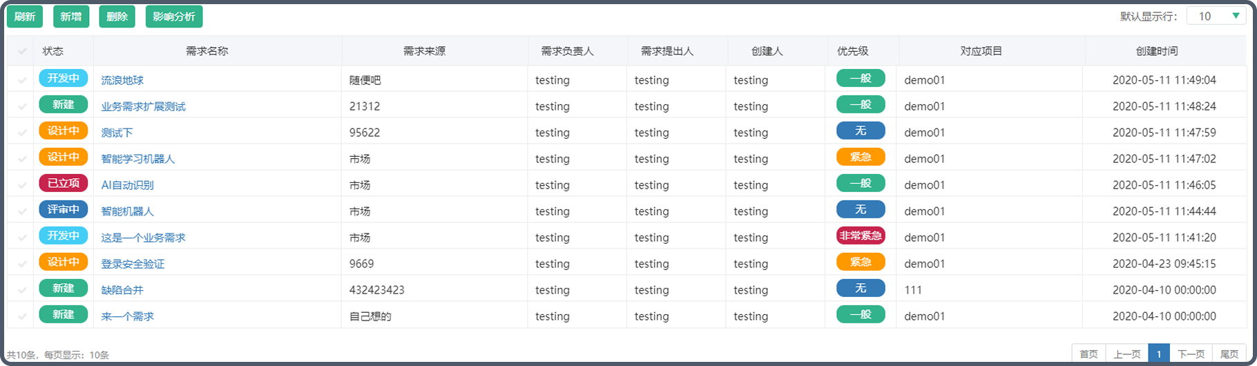 關(guān)聯(lián)需求總數(shù):未執(zhí)行、已完成、已驗(yàn)證、已取消等