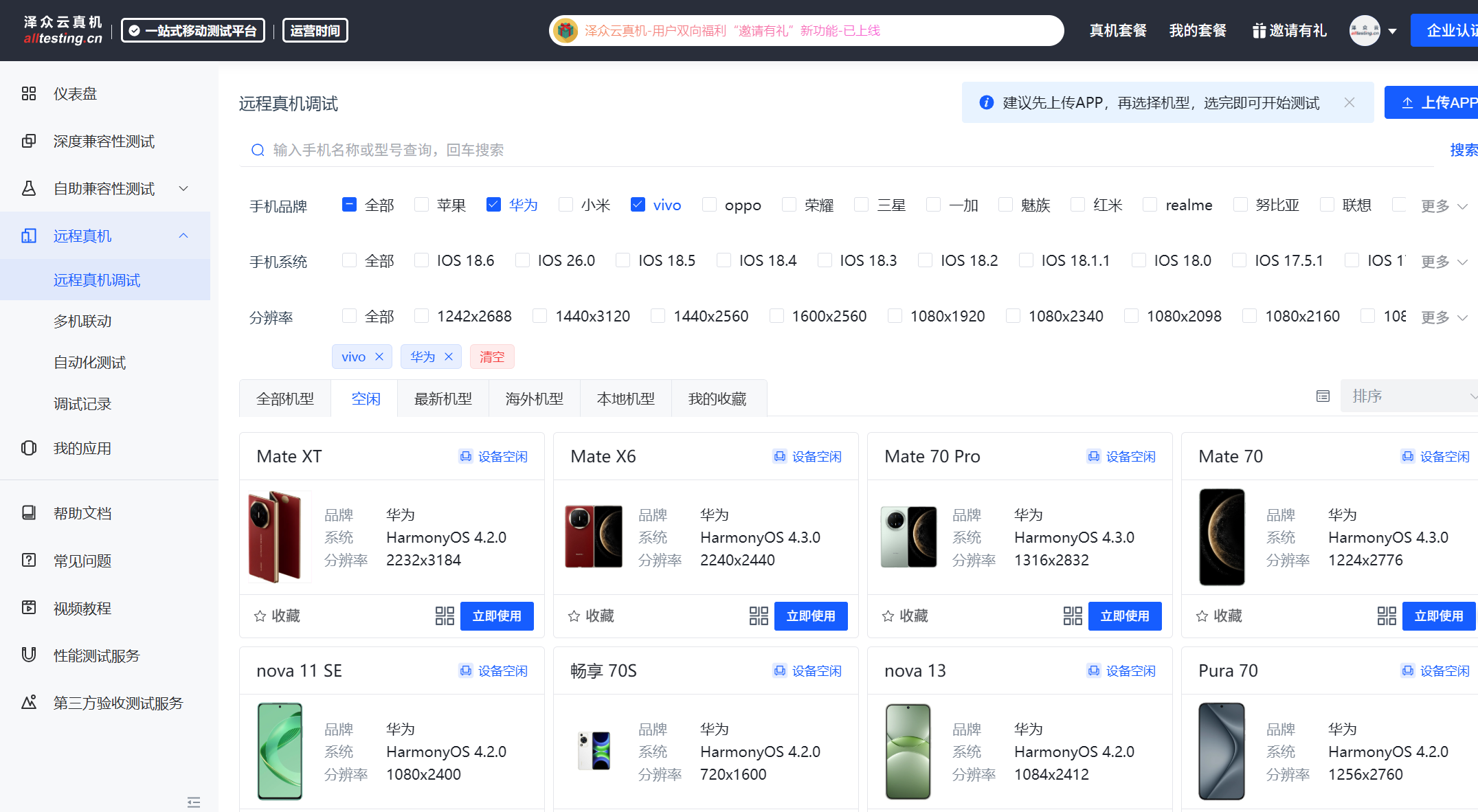 澤眾云旗下云真機(jī)平臺(tái)擁有幾千臺(tái)機(jī)型,已覆蓋市場(chǎng)98%機(jī)型,平臺(tái)兼容性測(cè)試服務(wù)包括移動(dòng)應(yīng)用深度兼容性測(cè)試和自助兼容性測(cè)試,行業(yè)覆蓋了金融、家居、醫(yī)療、交通、教育等行業(yè),澤眾云兼容性測(cè)試已成為市場(chǎng)主流的供應(yīng)商,我們不斷進(jìn)行技術(shù)突破和創(chuàng)新,全力打造一站式移動(dòng)測(cè)試平臺(tái)。