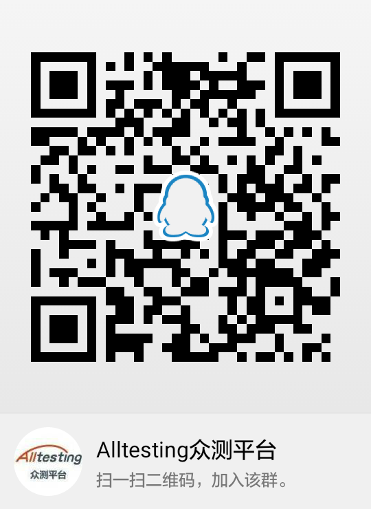 加入Alltesting眾測平臺QQ群335122456(或者QQ掃一掃二維碼)在線視頻培訓(xùn)2018.5.20 14:00~15:30(星期日),不見不散!