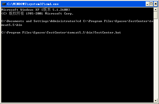 在cmd中輸入cd C:Program FilesSpasvoTestCenter omcat5.5in
