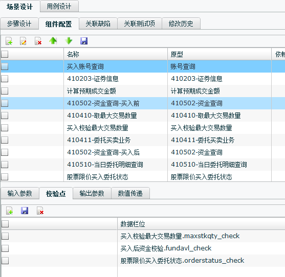 1.證券系統(tǒng)接口自動化,首先需要在測試需求下創(chuàng)建場景,進而在場景中配置組件,例如“股票的普通買入”,這個場景配置的組件如下所示: