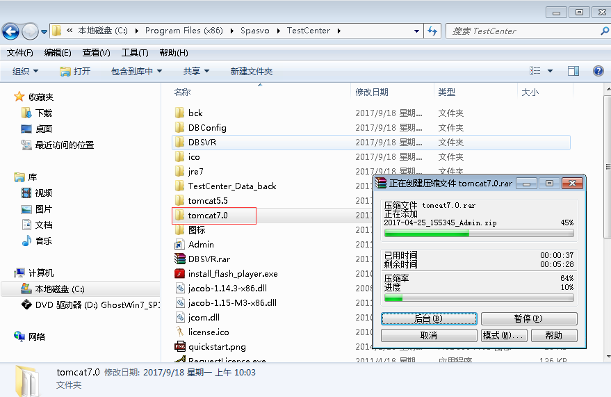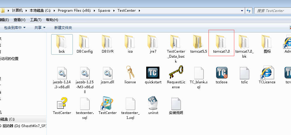 壓縮遷移服務(wù)器TC安裝目錄里下tomcat7文件夾(D:Program Files (x86)SpasvoTestCenter omcat7.1)并拷貝至新的部署服務(wù)器。