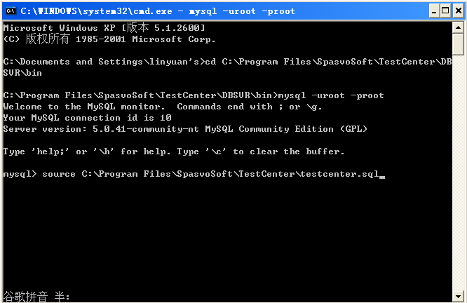 d)進(jìn)入mysql后可以導(dǎo)入TestCenter數(shù)據(jù)庫(kù)文件testcenter.sql 了,輸source C:Program FilesSpasvoSoftTestCenter estcenter.sql