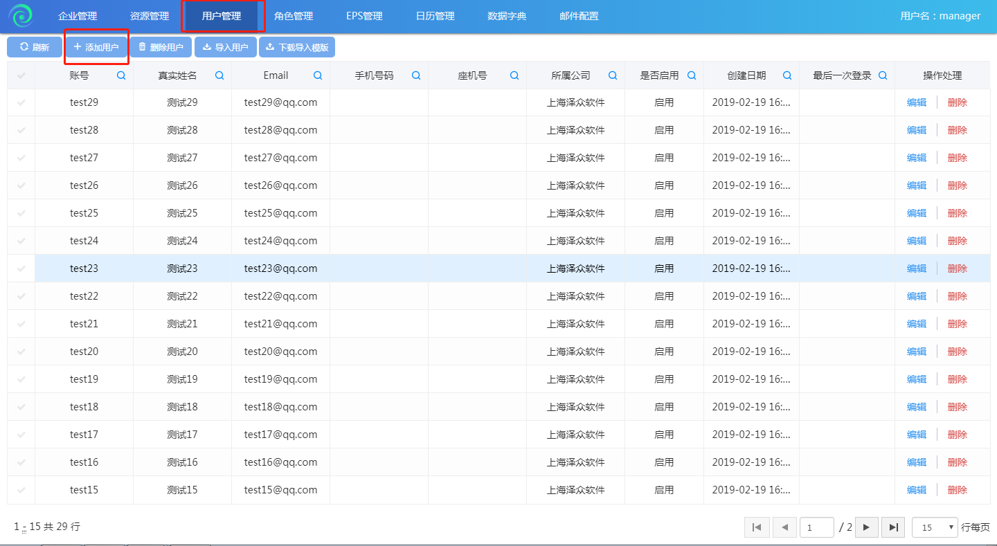 企業(yè)與部門都添加完之后,可以添加用戶了。