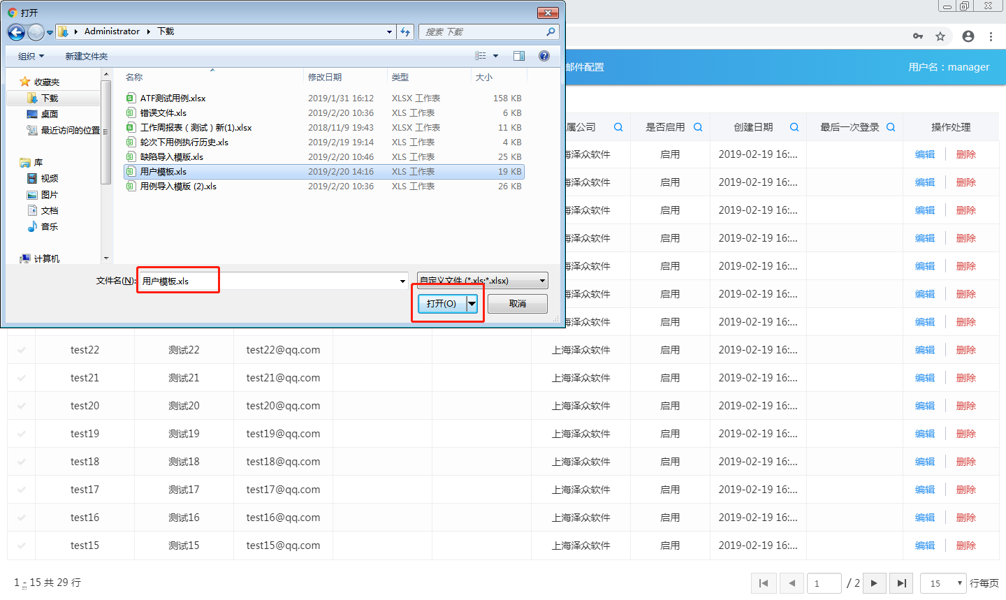 然后點(diǎn)擊【導(dǎo)入用戶】按鈕,選擇該模板進(jìn)行導(dǎo)入,提示導(dǎo)入成功。