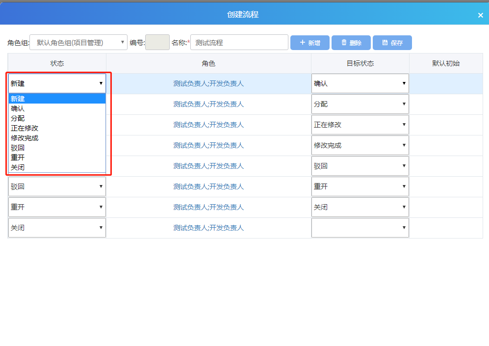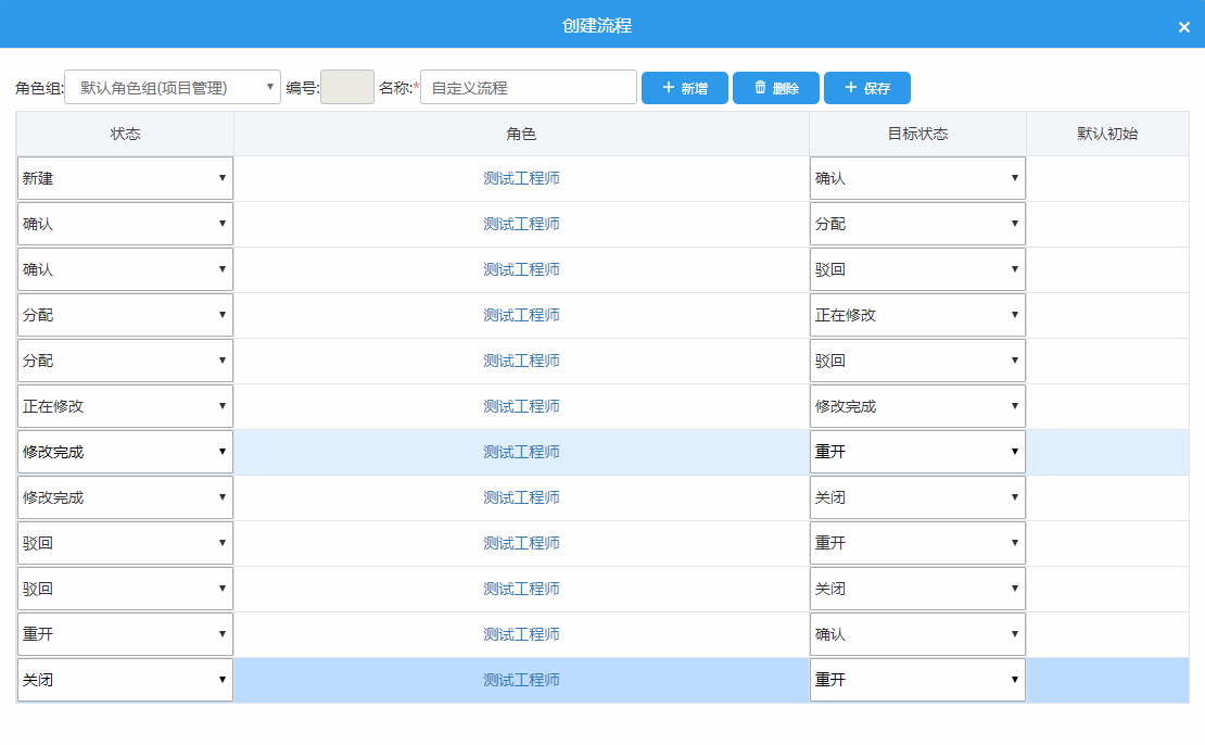 注:缺陷流程是和角色組關(guān)聯(lián)的。