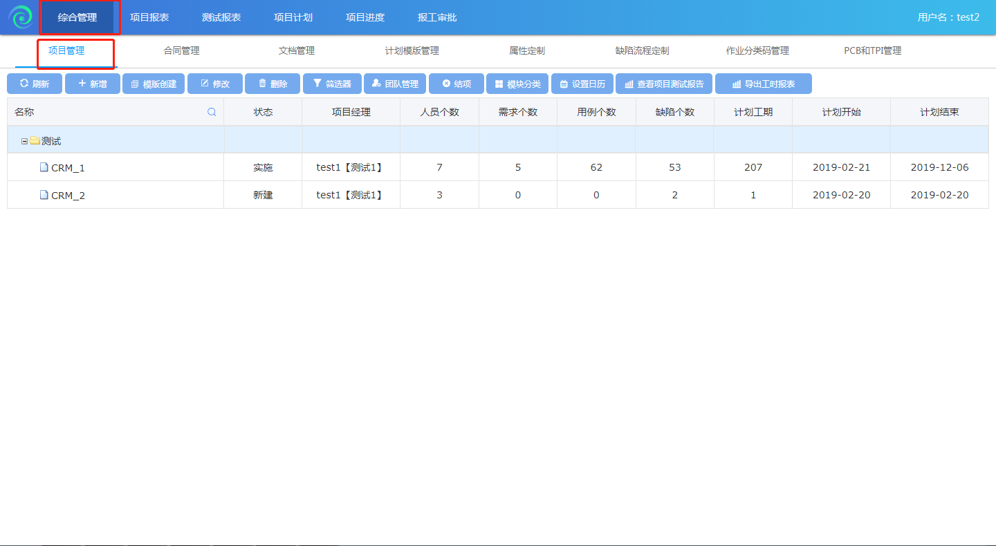 點(diǎn)擊【綜合管理】-【項(xiàng)目管理】進(jìn)入到項(xiàng)目管理頁(yè)面