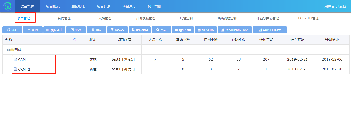 點擊【綜合管理】-【項目管理】進入到項目管理頁面。