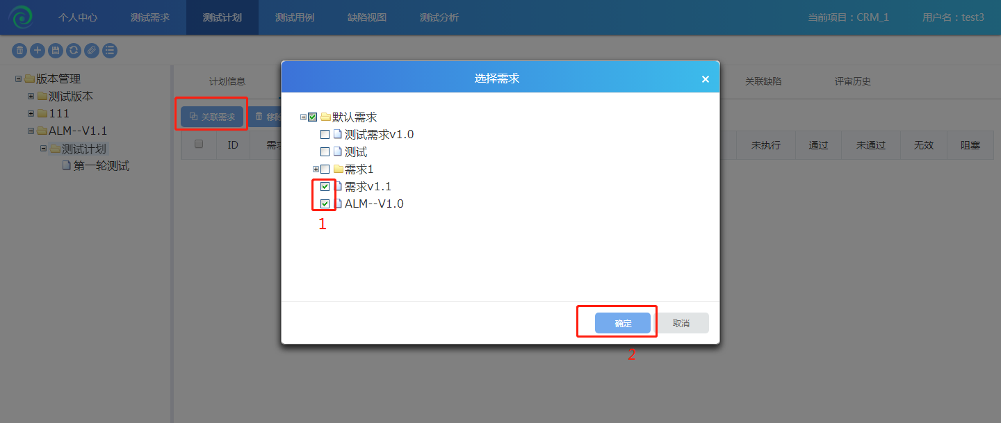 選中“功能測試計劃1”,點擊【關聯(lián)需求】,進入到關聯(lián)需求頁面