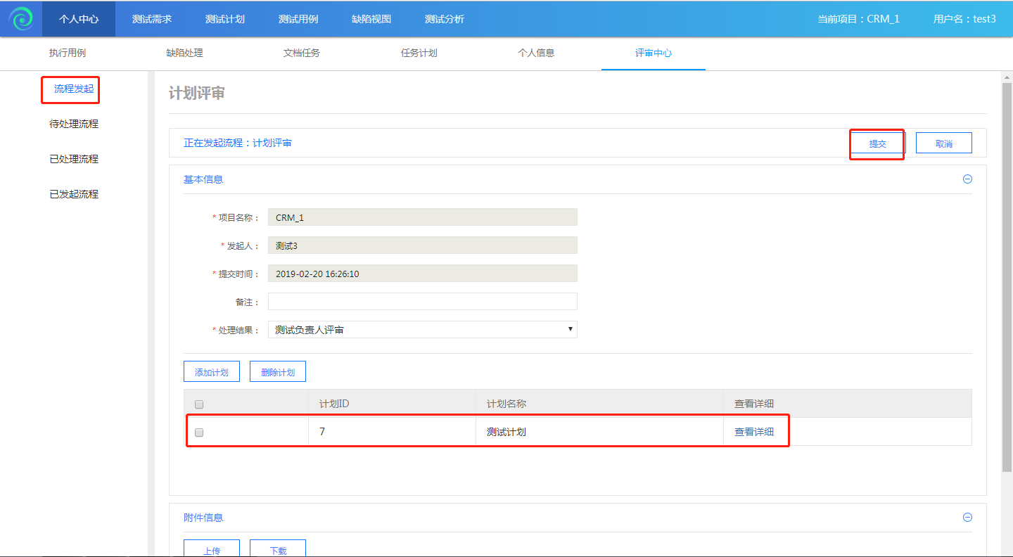 輸入備注信息,點擊【提交】按鈕,發(fā)起評審完成,處理結果是-測試負責人評審。