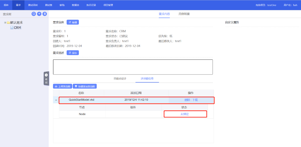 通過上傳體現(xiàn)需求業(yè)務(wù)流程的活動(dòng)圖,活動(dòng)圖與組件進(jìn)行綁定,從而使需求根據(jù)業(yè)務(wù)流程產(chǎn)生對(duì)應(yīng)的用例場景。