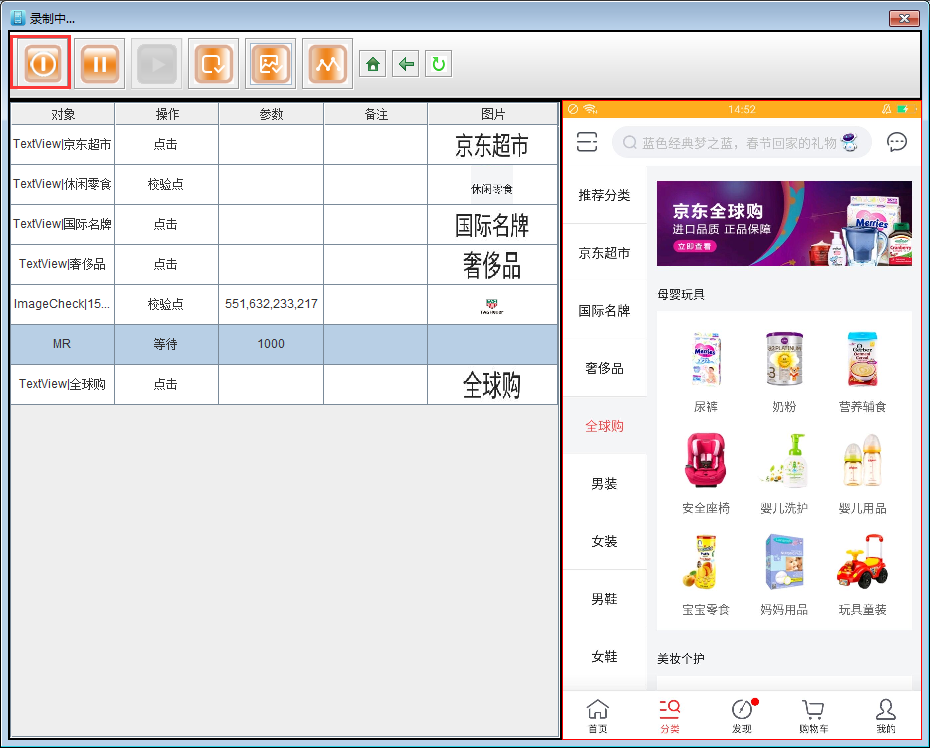 在錄制界面,點(diǎn)擊工具欄的“對(duì)象校驗(yàn)” |