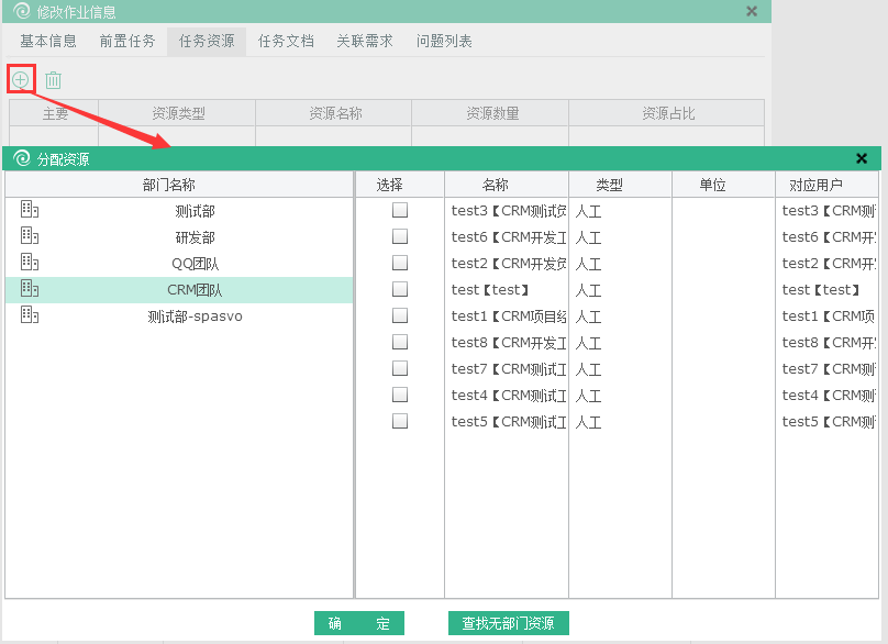 【添加】按鈕為該任務(wù)添加資源,設(shè)置主要資源,雙擊資源占比,修改資源占比。