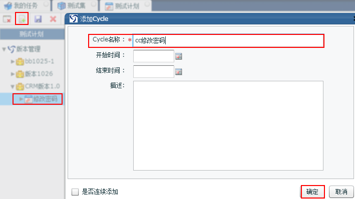 新建測試計劃下的測試版本,測試計劃,測試輪次 |