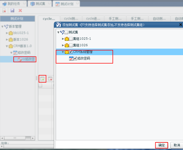 4.點擊添加測試集,勾選需要執(zhí)行的測試集 5.點擊確定,輪次中顯示綁定的測試集信息 |