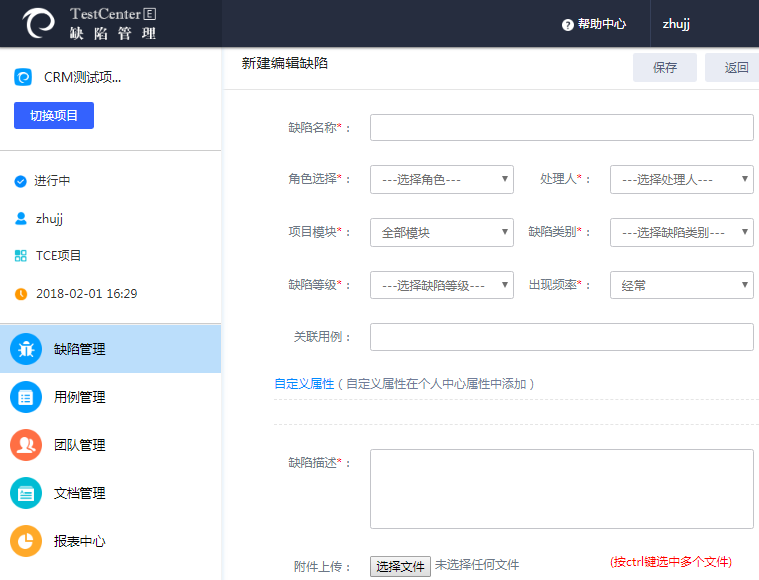 新建:【進(jìn)入項(xiàng)目】-【缺陷管理】-【新建缺陷】 |