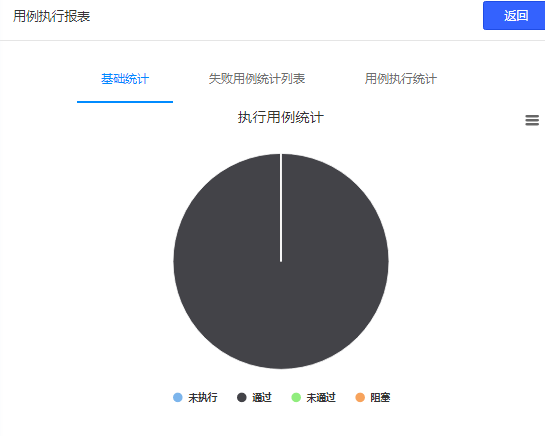 通過選擇“基礎(chǔ)統(tǒng)計”,“失敗用例統(tǒng)計列表”,“用例執(zhí)行統(tǒng)計”查看各個報表 |