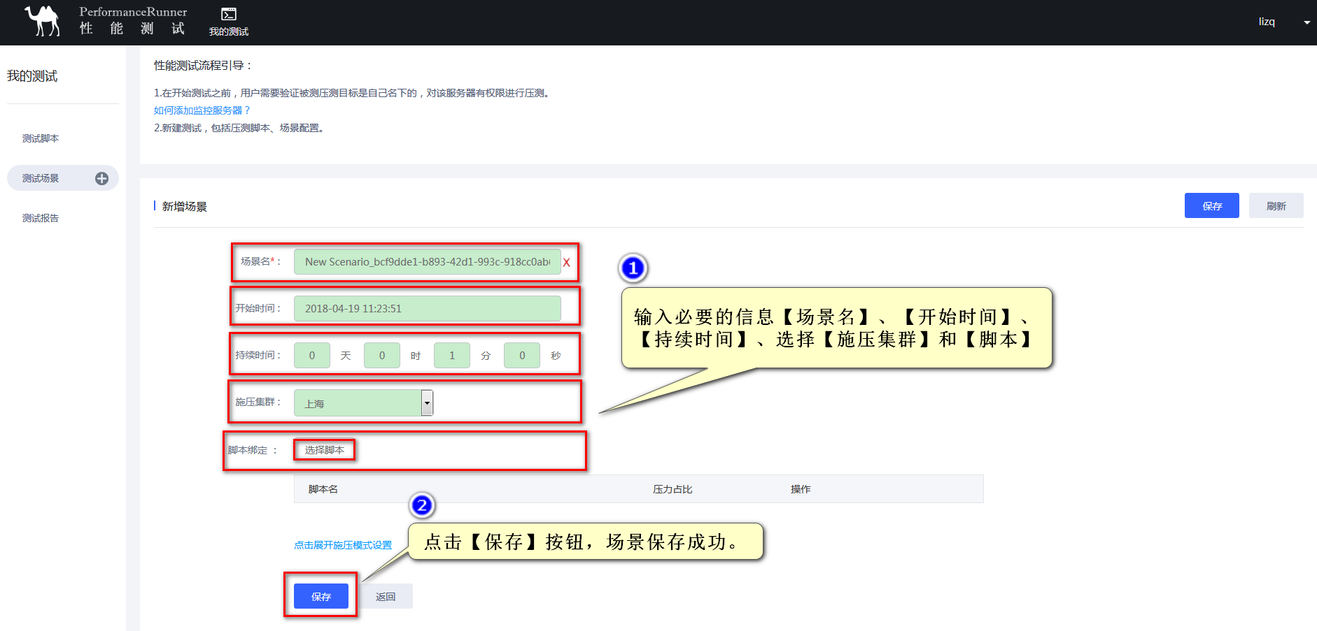 2) 在新增場景頁面輸入相關(guān)內(nèi)容,單擊【保存】按鈕。