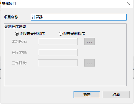 錄制腳本前新建項目和腳本,這里可以對錄制程序設(shè)置,選擇不限定錄制程序和限定錄制程序,并對程序進行相應(yīng)參數(shù)和工作目錄的設(shè)置。