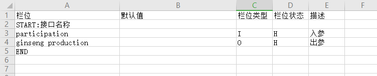 接口組件為格xls文件,內(nèi)容包含欄位,默認(rèn)值,欄位類型欄位狀態(tài)以及描述