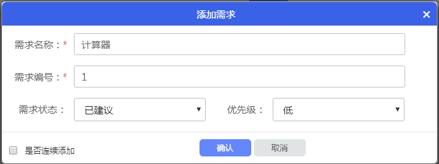 填寫(xiě)需求名稱(chēng)、需求編號(hào),選擇需求狀態(tài)和優(yōu)先級(jí),點(diǎn)擊確認(rèn)新建需求。