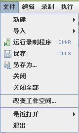 如上所示,所有對腳本的管理操作都可以在文件菜單下完成,包括對腳本的新建,導(dǎo)入,保存,另存為,關(guān)閉,改變工作空間,近打開,退出等等。