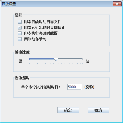 回放設(shè)置,可設(shè)置某些屬性,如:設(shè)置播放速度,單個命令執(zhí)行超時時間等。