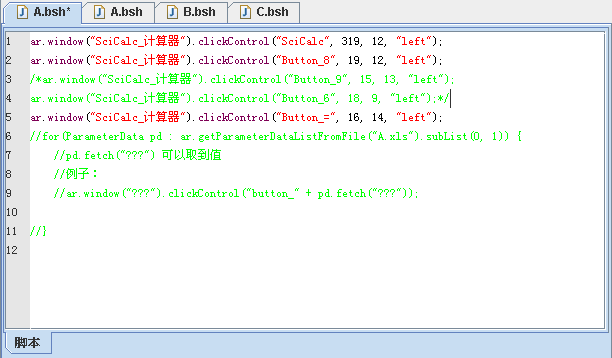 雙擊項目管理器中要編輯的腳本可打開腳本編輯器。編輯器可實現(xiàn)關(guān)鍵字著色,支持多行注釋(/**/)及單行注釋符(//),支持腳本命令自動補全(快捷鍵Alt+/)。如果腳本已被編輯過但還沒有保存,在腳本表單中相應(yīng)的腳本名稱后會有一個星號提示符,提示你保存腳本,點擊工具欄的保存按鈕或是快捷鍵Ctrl+S保存后星號消失。