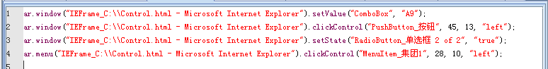 運(yùn)行Flex程序必須安裝Adobe公司的Flash插件,AutoRunner當(dāng)前版本支持常用的標(biāo)準(zhǔn)Flex控件錄制。控件屬性和Windows控件屬性一樣,下面是一段Flex程序腳本。