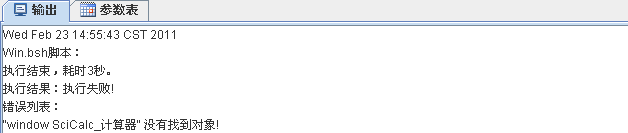 如果回放之前將計算器窗口關閉,回放后會有如下信息輸出,提示執(zhí)行window 動作時,計算器窗口對象沒有找到。