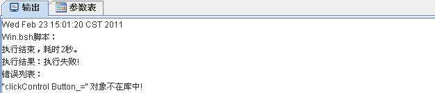 如果回放之前在對象庫中將等號的屬性信息刪除,回放后會有如下信息輸出,提示回放clickControl 動作時,等號對象在對象庫中沒有發(fā)現(xiàn)。