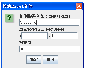 校驗Excel文件的腳本命令為checkExcelCell(See 1.4.3)命令,校驗Excel文件對話框如下圖所示: