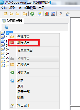 1.選中要?jiǎng)h除的項(xiàng)目,右擊->刪除項(xiàng)目,如下圖所示,完成項(xiàng)目的打開