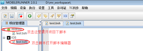 ●腳本編輯區(qū):對(duì)測(cè)試腳本編輯,在MobileRunner中位于水平拆分條的上部;