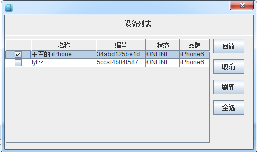 在執(zhí)行菜單中,點(diǎn)擊開始執(zhí)行按鈕,彈出設(shè)備列表頁(yè)面,選擇多個(gè)設(shè)備信息,點(diǎn)擊回放按鈕,彈出回放頁(yè)面。