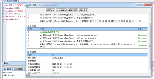 回放腳本的過(guò)程,實(shí)質(zhì)是對(duì)先前的錄入動(dòng)作的一次重復(fù)操作,只是這個(gè)過(guò)程是根據(jù)錄入的腳本自動(dòng)完成的。下面以先前錄入的IOS設(shè)備腳本為例,介紹一下回放操作及注意事項(xiàng)。