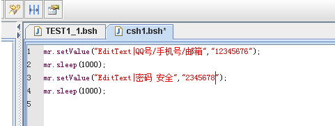 下面是將腳本的第四句和第六句進(jìn)行參數(shù)化,使它執(zhí)行上面參數(shù)表中的輸入用戶名為1密碼為4以及用戶名為2密碼為6的操作,參數(shù)化腳本如下: