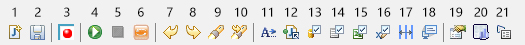 如上圖所示,工具欄共有21個(gè)按鈕,下面簡(jiǎn)單介紹其功能。