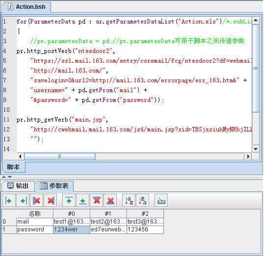 參數(shù)表用在參數(shù)化腳本過程中,可以用參數(shù)表工具欄對(duì)參數(shù)表進(jìn)行各種編輯,編輯后的數(shù)據(jù)以xls文件形式被保存,每一列是一次循環(huán)。