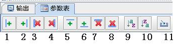 參數(shù)表工具欄用來編輯參數(shù)表,如上圖所示,每一個(gè)按鈕功能如下: