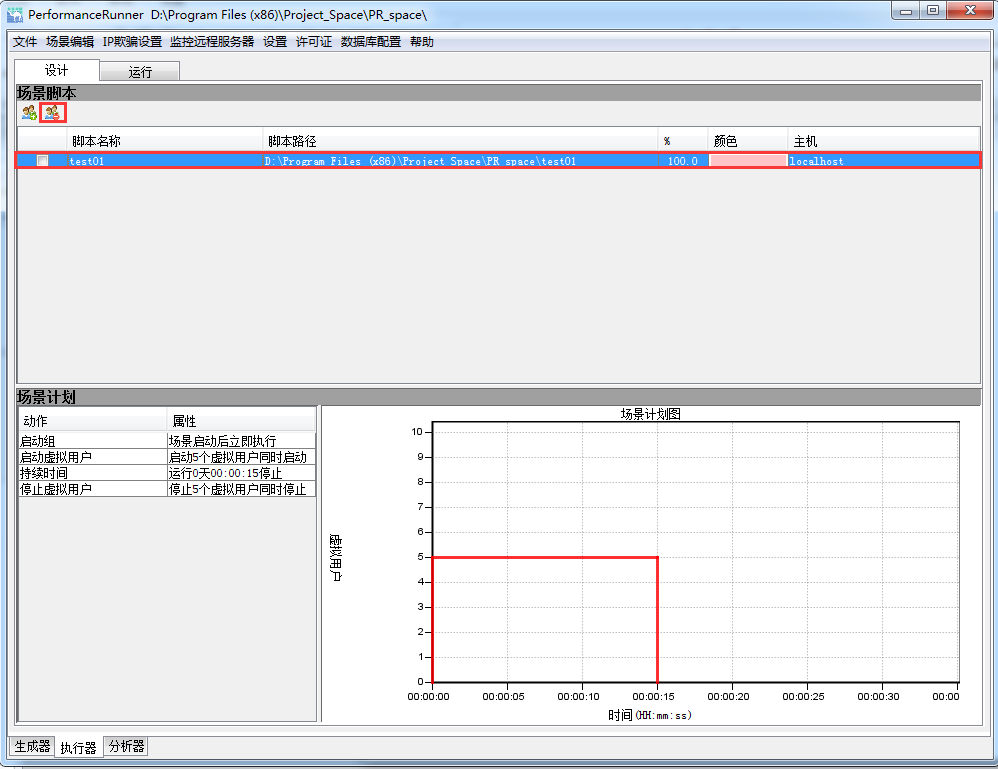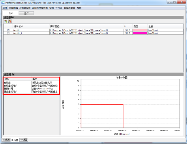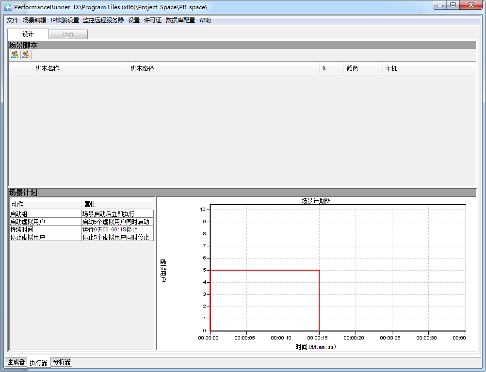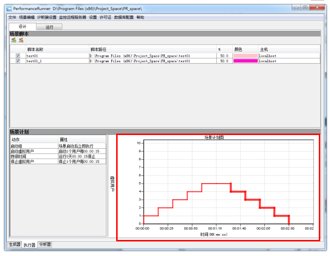 說明:虛擬用戶數(shù)目會直接影響到壓力的大小。在一般情況下,采用遞增虛擬用戶的方式來尋找系統(tǒng)能夠承受的合理壓力。比如,預(yù)估總虛擬用戶數(shù)為20個,可以設(shè)置初始為2個,每5分鐘增加1或2個用戶。界面可以配置虛擬用戶啟動方式,可選擇全部啟動或者按照某一時間間隔啟動指定個虛擬用戶方式啟動。