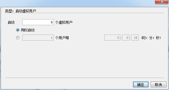 - 啟動虛擬用戶:該項設(shè)定了所有虛擬用戶的啟動方式,可以選擇所有虛擬用戶同時啟動,也可以選擇每個指定時間內(nèi)啟動指定數(shù)目的虛擬用戶。